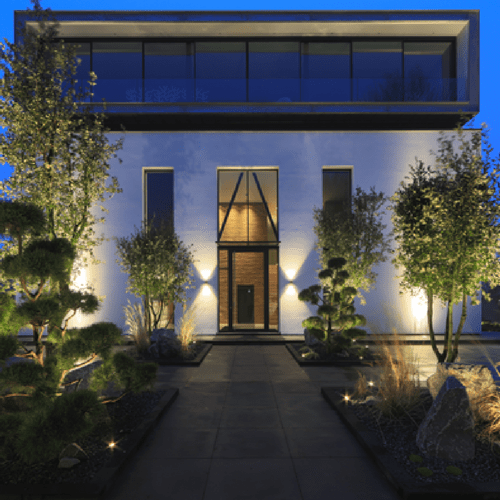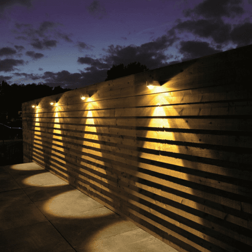 Wall lights can be used in various ways, for instance next to French doors or mounted on a wall. A beautiful effect is created when several wall lights are installed at eye level along a fence. The repeated placement also accentuates the depth of the yard in the evening. Do you want to precisely illuminate a pathway or driveway? The install the fixtures lower on the wall so that the light reaches the ground. Pergolas and overhangs can also be nicely illuminated with wall lights. For example, create a soft light on a pole or wall or use small spotlights to highlight your lounge area. Finally, you can also install a wall light “just next to the door”. Some wall lights in our range can be connected directly to the main power supply.